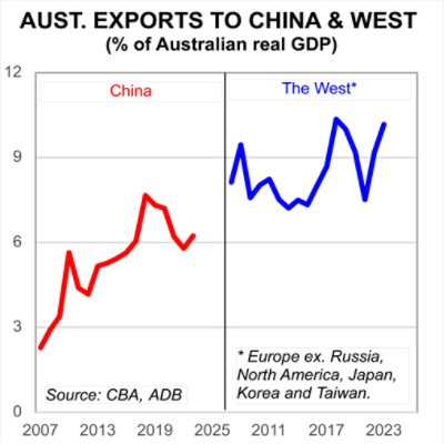 Australia’s export landscape is undergoing a significant reset as geopolitical tensions and shifting global supply chains reshape where Australian goods are sold. CBA economists say declining trust between major governments (especially since the pandemic) has accelerated a long running shift away from concentrated reliance on China.