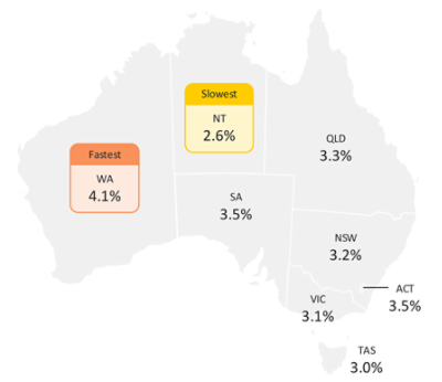 NOT INVESTMENT RESEARCH. The Commonwealth Bank ‘Wage and Labour Insights’ is not investment research and nor does it purport to make any recommendations. The Commonwealth Bank ‘Wage and Labour Insights’ has been prepared without taking into account your objectives, financial situation (including your capacity to bear loss), knowledge, experience or needs. You should not act on the information contained in this document. To the extent that you choose to make any investment decision after having read this document, you should not rely on it but consider its appropriateness and suitability to your own objectives, financial situation and needs, and, if appropriate, seek professional or independent financial advice, including tax and legal advice. The data used in the ‘Commbank Wage and Labour Insights’ series is a combination of CBA Data and publicly available Australian Bureau of Statistics (ABS), CoreLogic and Reserve Bank of Australia data. Any reference made to the term ‘CBA data’ means the proprietary data of the Bank that is sourced from the Bank’s internal systems and may include, but is not limited to, home loan data, credit card transaction data, merchant facility transaction data and applications for credit. All customer data used, or represented, in this report is de-identified before analysis and is used, and disclosed, in accordance with the Group’s Privacy Policy.