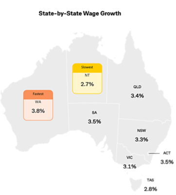 “The CommBank Wage Insights series slowed in February with the quarterly rate easing to 0.7 per cent. The annual rate was steady at 3.1 per cent,” Allen said.