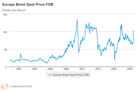 Brent crude has swung dramatically during the Iran war, rising from roughly $US70 per barrel before the war in late February to more than $US119 at times. On Friday, ahead of the peace talks, Brent for June delivery fell 0.8% to $US95.20 per barrel.