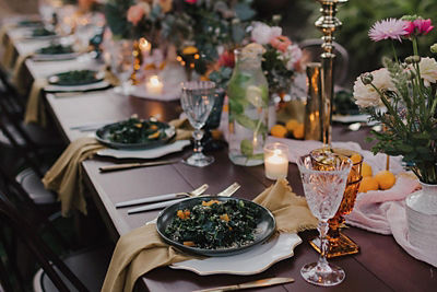 You don’t need to spend big to make things feel thoughtful – you just need a bit of meaning. Try turning a pot luck into a “recipe exchange” where each guest brings a dish with a recipe card to share. And instead of splashing out on decor, buy flowers cheaply at the markets and give them a personal twist. “If you serve a dessert your grandma made, people will connect with the story and suddenly a simple cake feels special,” says Hart.