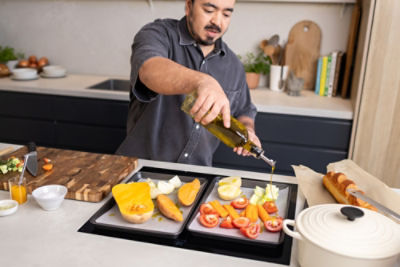 Heat your oven to 200°C (fan-forced). Place the vegetables onto a lined baking tray, drizzle with most of the olive oil and season with salt and pepper. Roast for one hour or until tender.