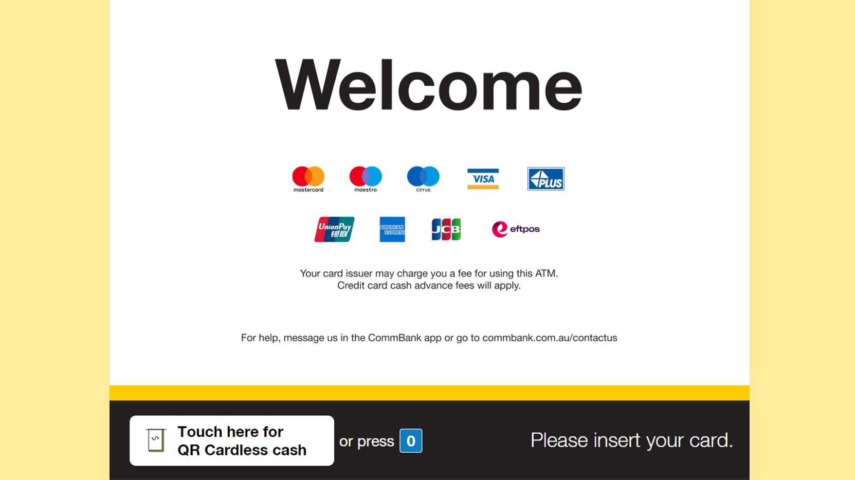 After starting in the CommBank app, finish your QR Cardless transaction at a CommBank ATM.