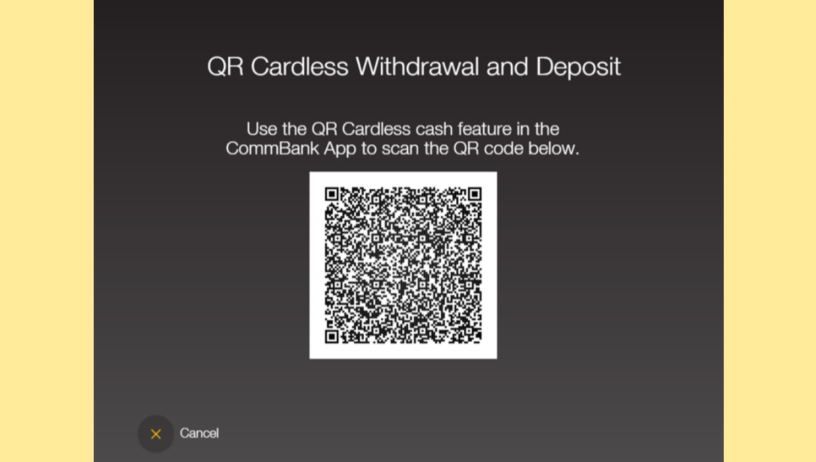 QR Cardless deposits and QR Cardless withdrawals can only be completed with the Commbank app on CommBank app registered devices at a CommBank ATM (only available to QR Cardless eligible Commbank accounts). Daily deposits and withdrawals limits apply.