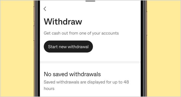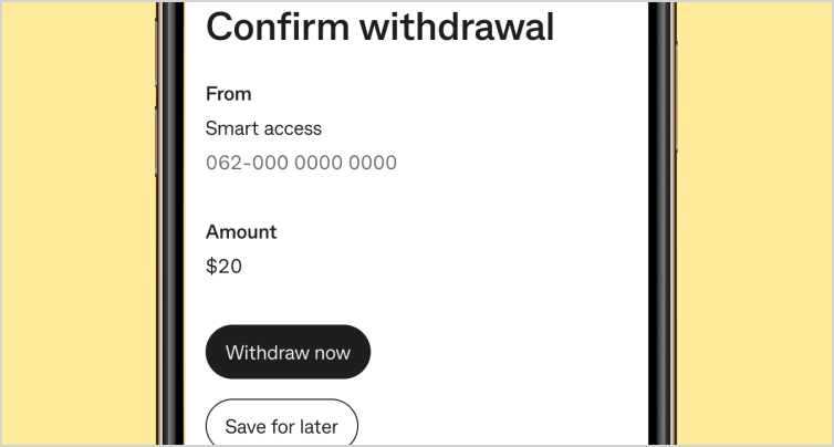 4. Confirm the details are correct and choose "Withdraw now" if you're at the ATM or choose "Save for later" to save for 48 hours