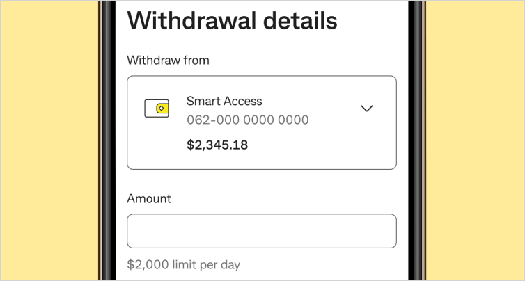 3. For new withdrawals, choose the account, enter an amount and then choose "Next"