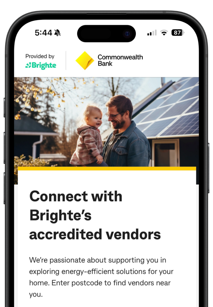 CommBank receives a fee from Brighte in connection with finance provided by CommBank for a home energy package purchased via Brighte’s Marketplace.