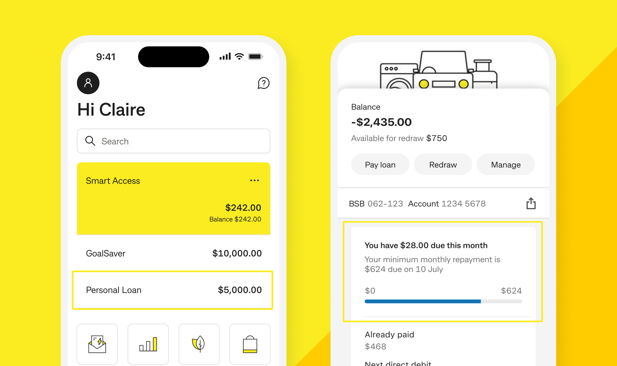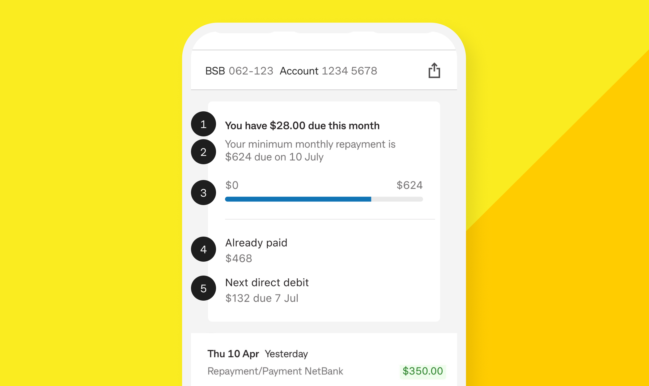 Using the image as an example only — view your real repayment progress in the CommBank app.