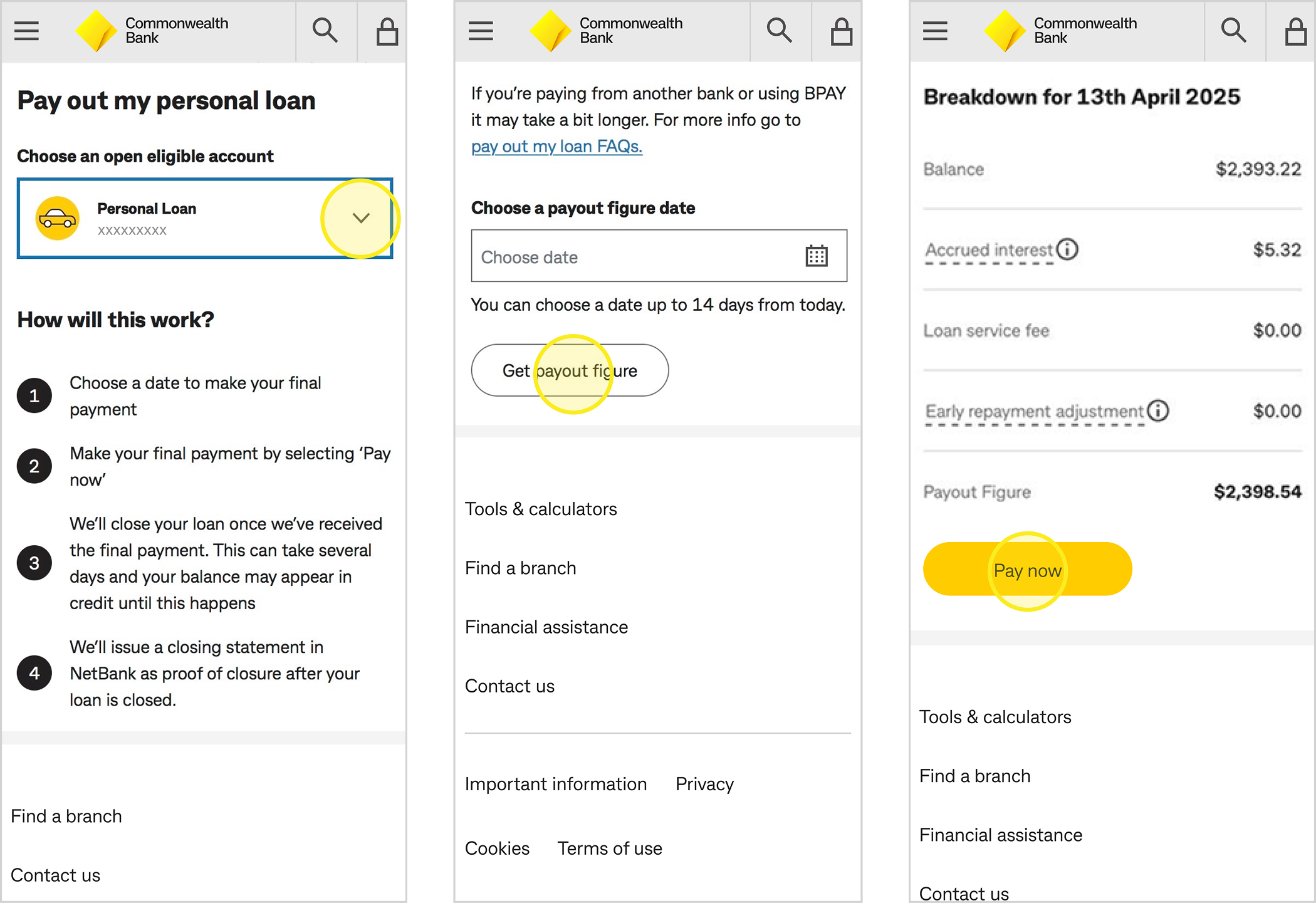 You can access a payout figure and close your loan in your CommBank app with the below steps: