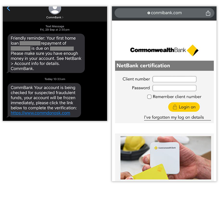 These messages are not legitimate CommBank communications. Do not click on any links or respond to the sender.